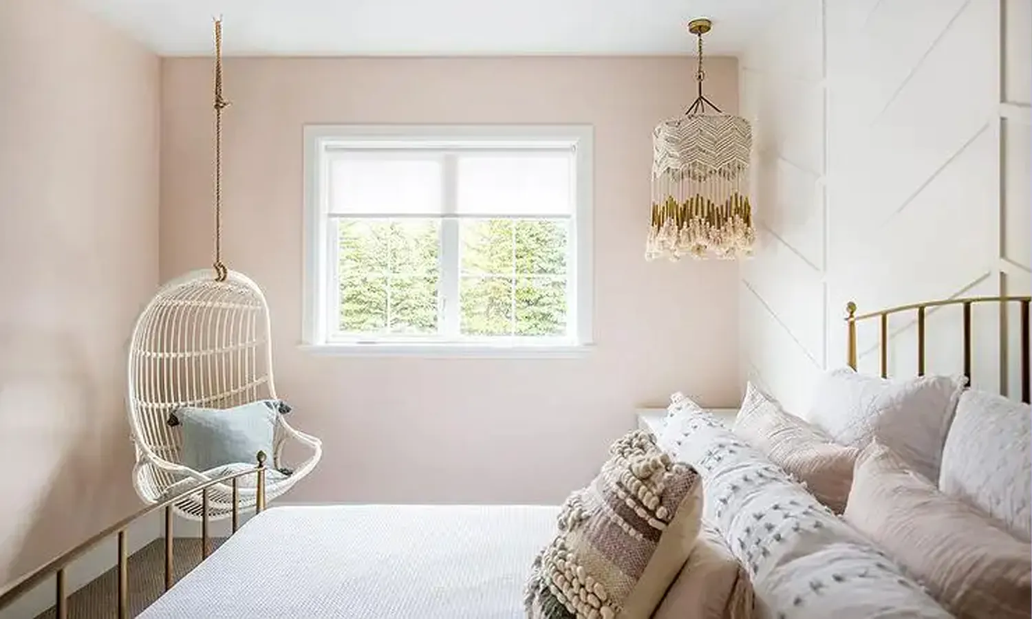 Mau menghadirkan suasana warna cat kamar tidur elegan dan romantis yang kekinian? Maka, pilihlah pink pastel dan dipadukan dengan putih.