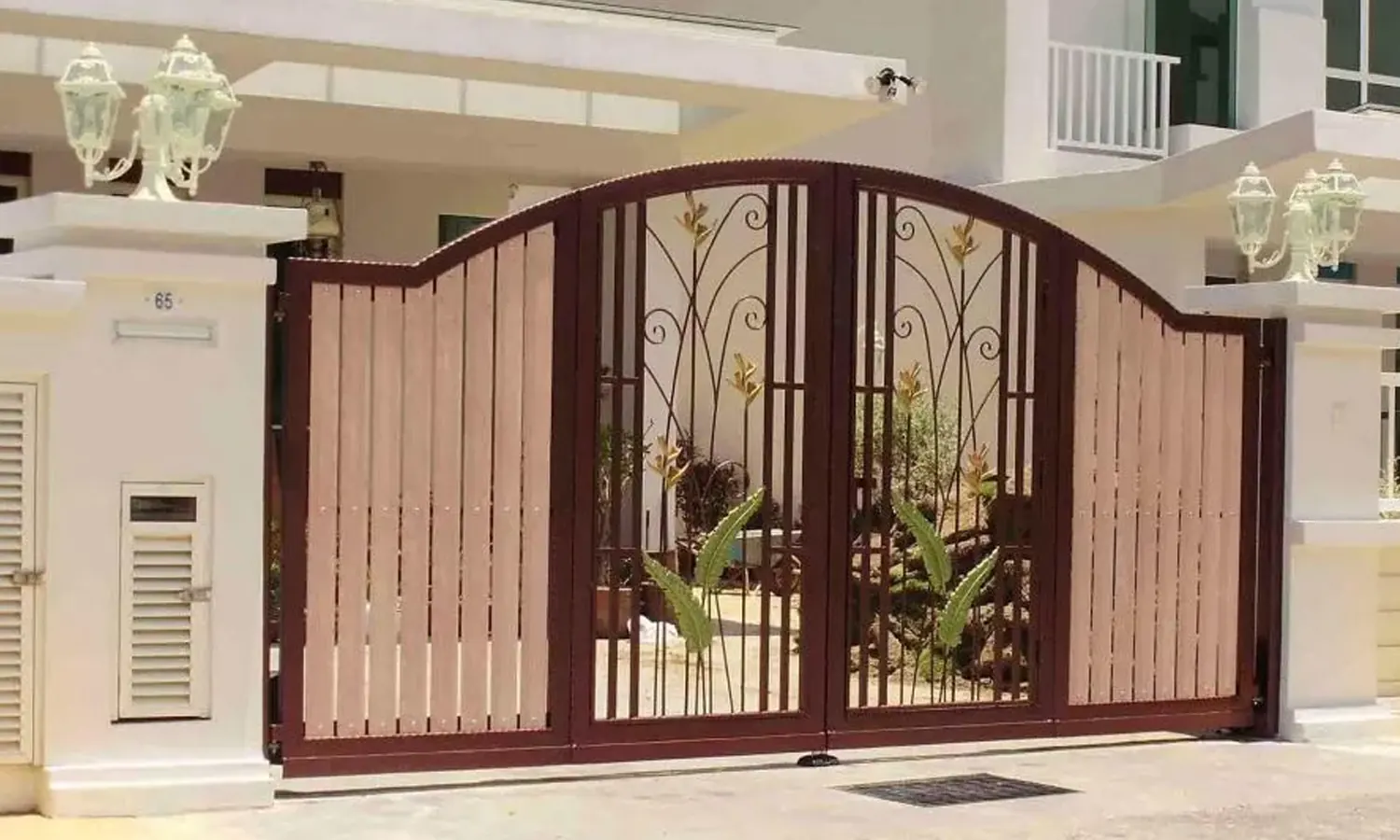Warna cat pagar rumah mewah ini dapat diaplikasikan pada pagar yang memiliki kombinasi material kayu dan besi.