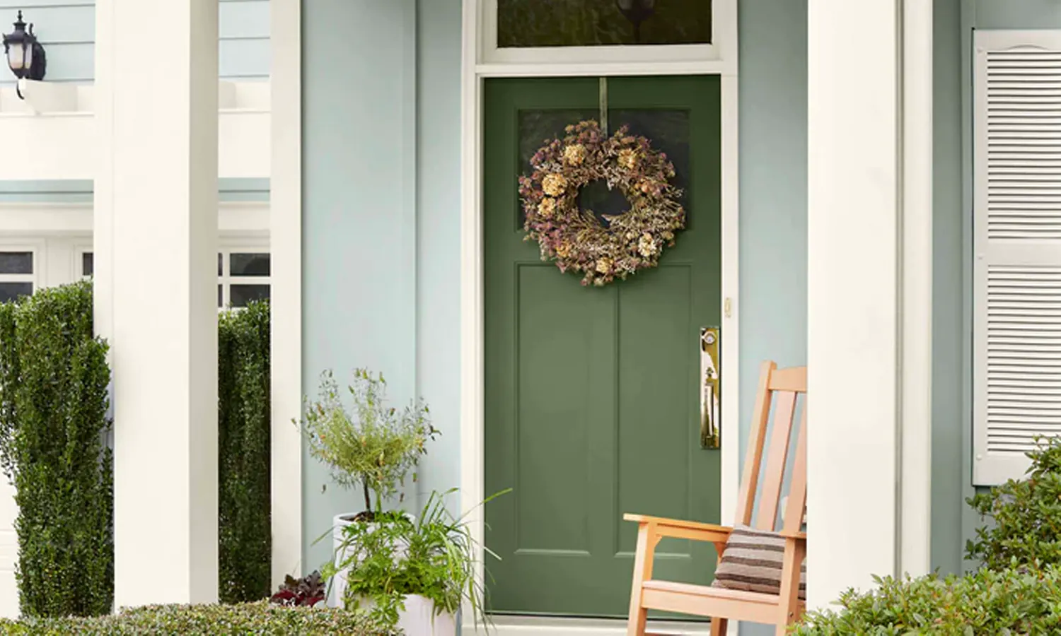 Apakah kamu mengoleksi tanaman hias di pekarangan atau depan rumah? Jika iya, perkuat kesan asri dengan menggunakan warna cat pintu kayu yang bagus yaitu cat hijau pada pintu.