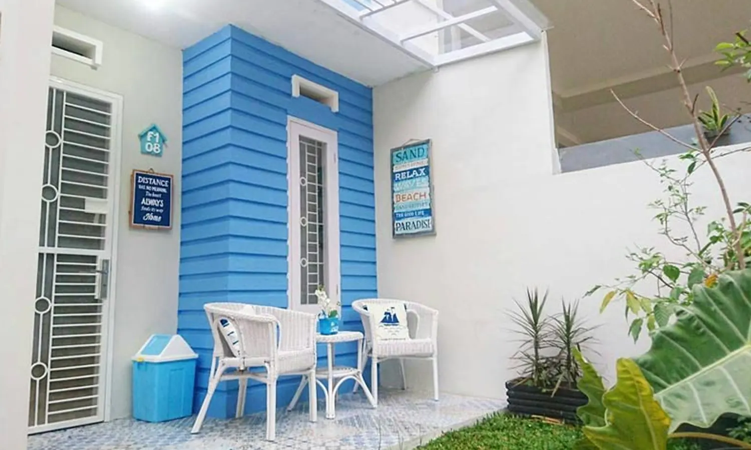 Jika kamu memilih warna cat teras biru dan putih, gunakan warna furnitur rumah yang senada seperti biru muda, aksen kayu atau cokelat.