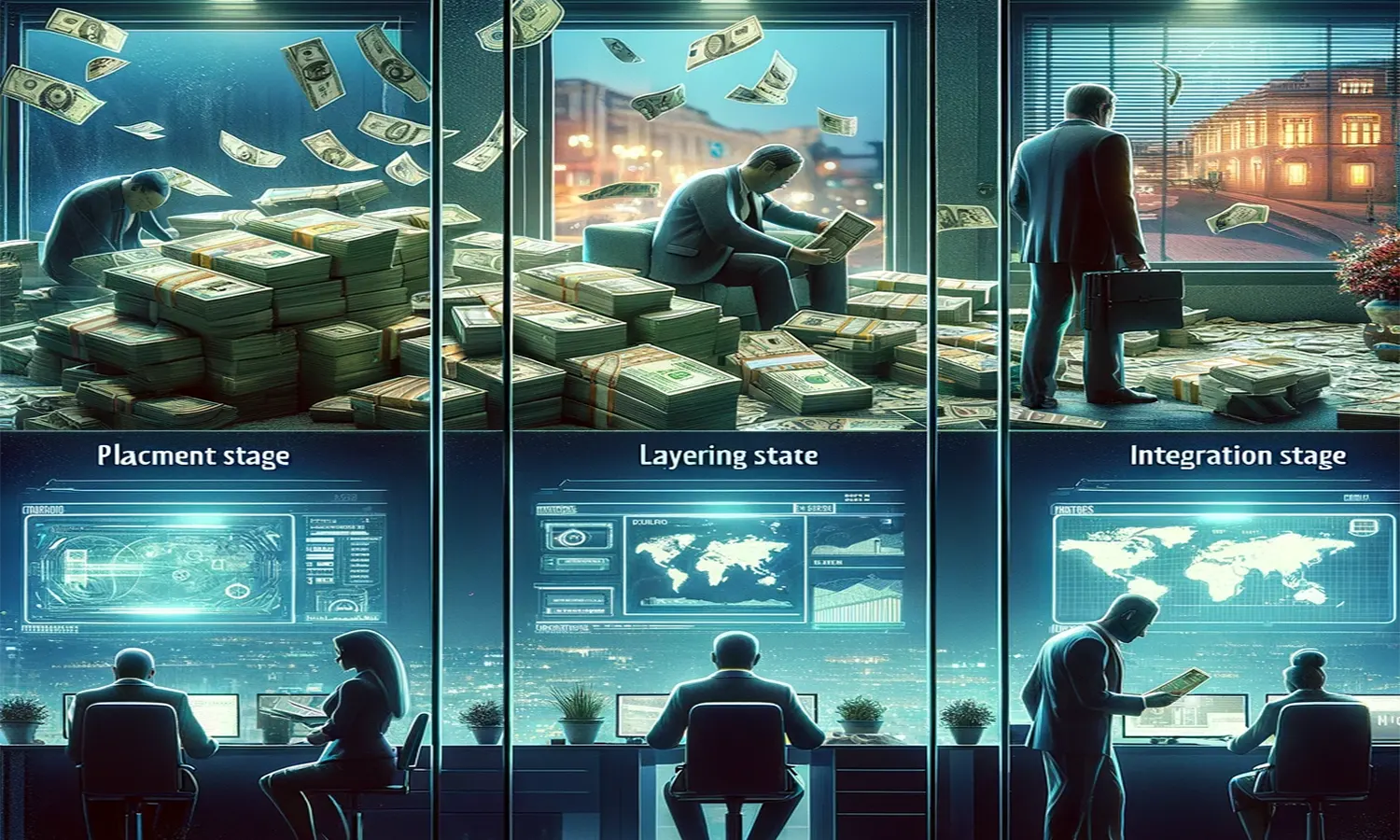 Umumnya, proses pencucian uang memiliki tiga tahap kegiatan, yaitu penempatan, penyebaran dan pengumpulan.