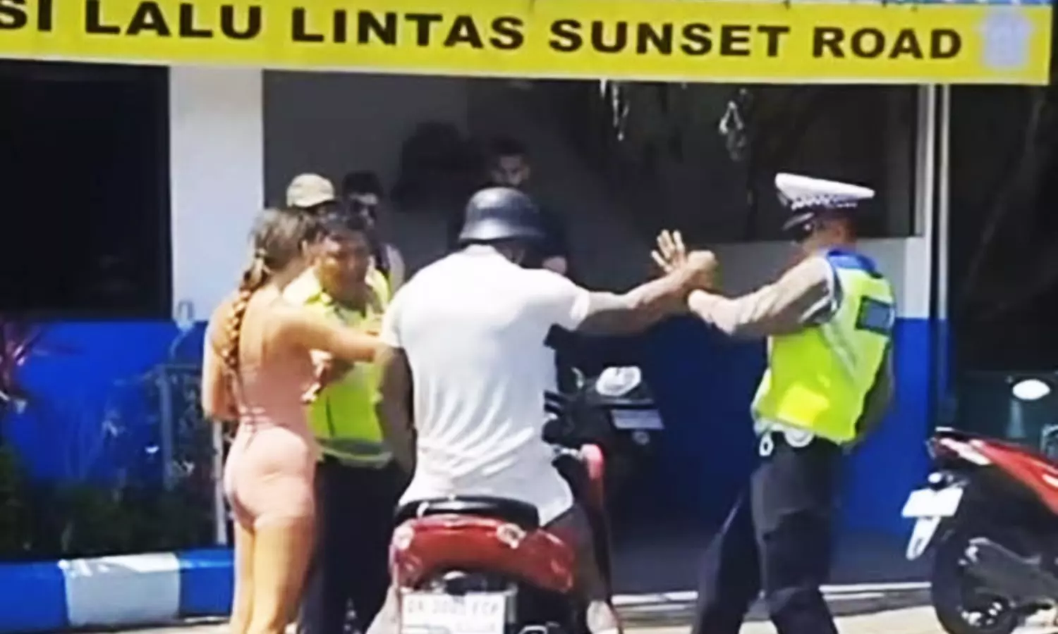 Polisi kemudian menghampiri karena melihat pelaku memboncengkan seorang WNA perempuan yang tak memakai helm.